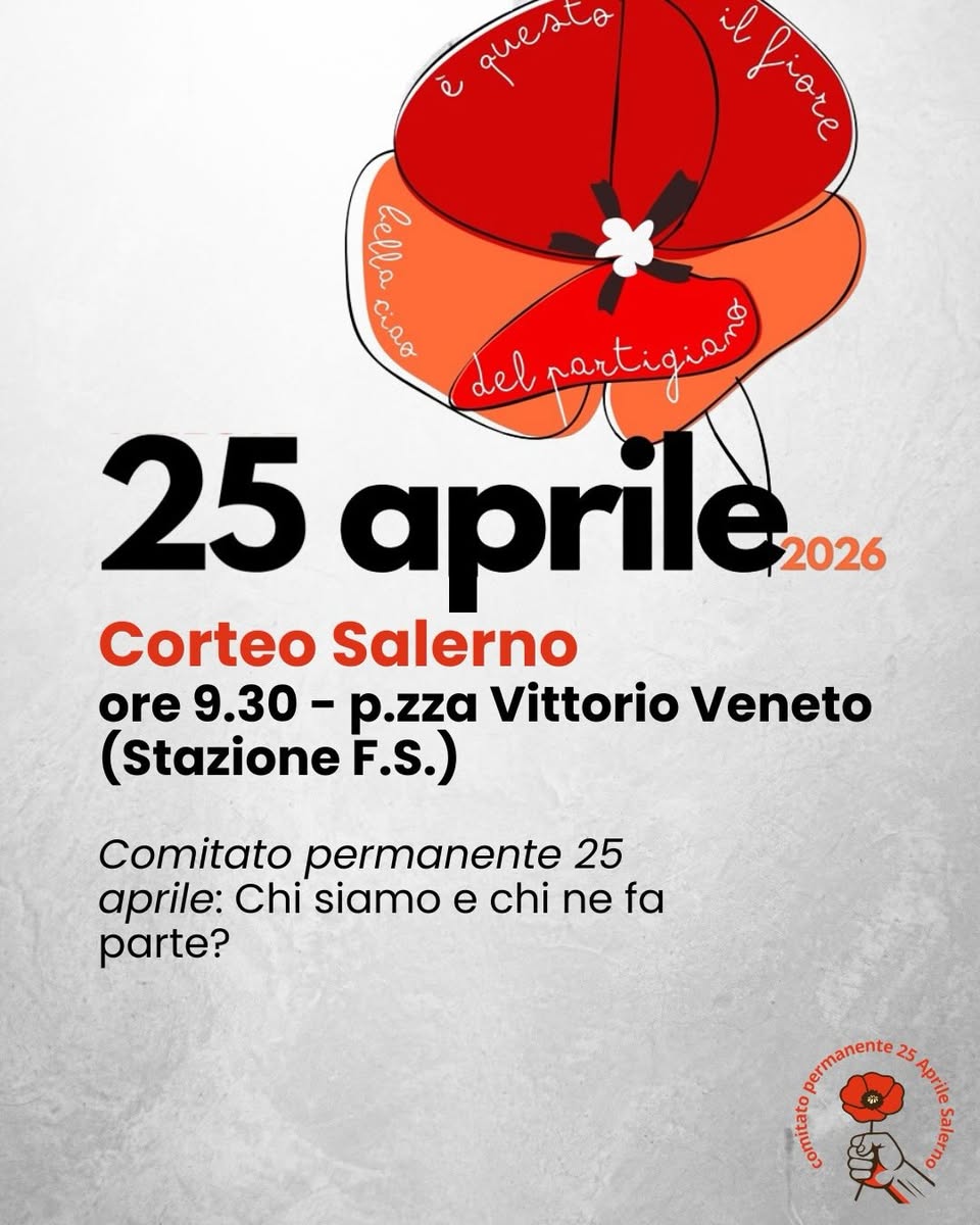 Attraverseremo Salerno per ricordare la Resistenza partigiana e per tenere viva quella di oggi, contro politiche autoritarie, criminali e genocide.