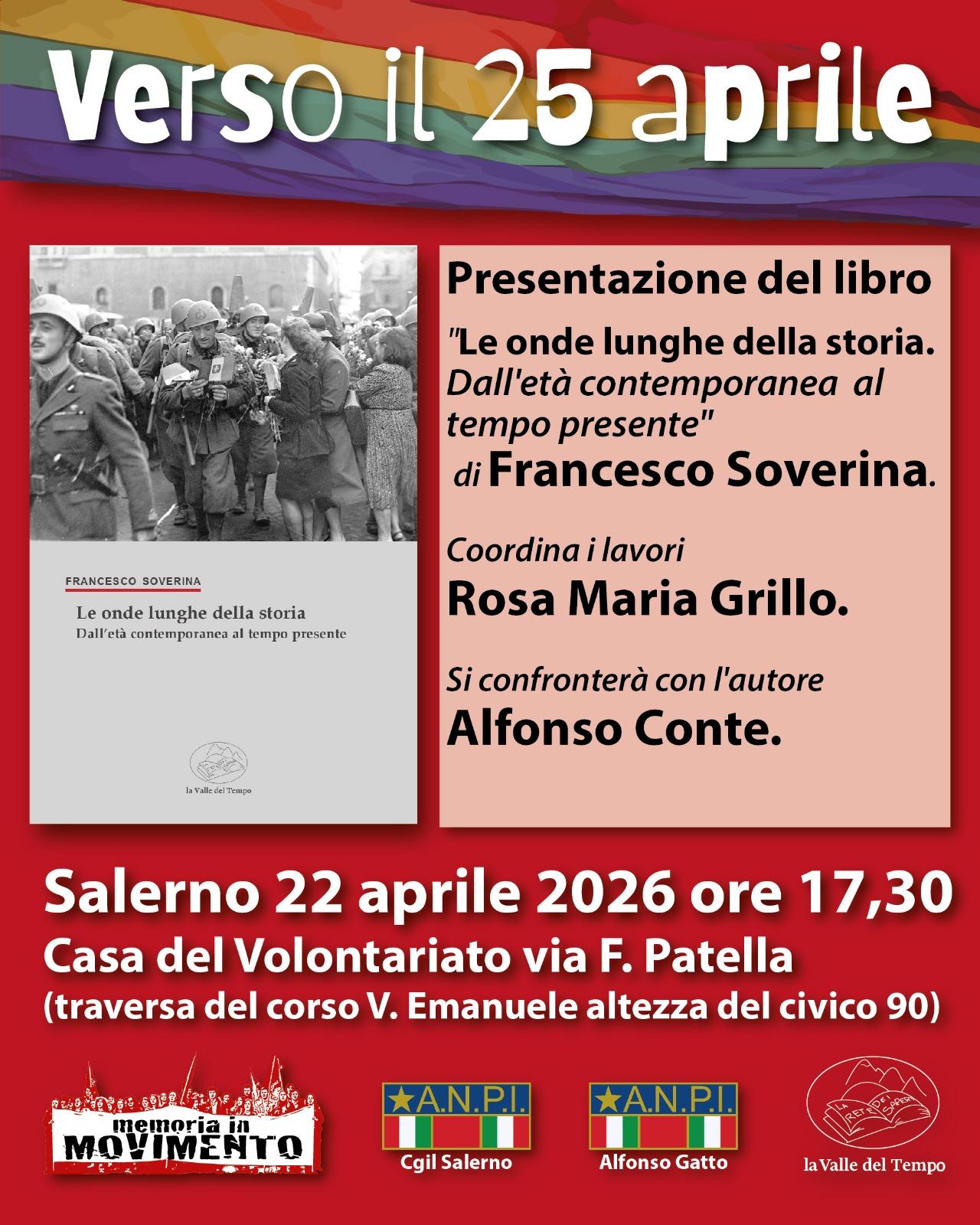 In occasione delle celebrazioni per il 25 Aprile, l’Associazione Memoria in Movimento, insieme all’ANPI CGIL Salerno e all’ANPI Alfonso Gatto, promuove un importante momento di riflessione storica e civile.