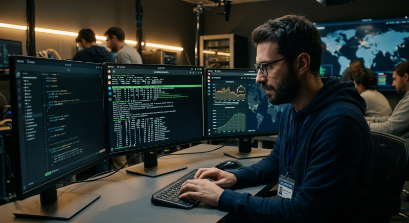 Immagine tecnica: il terminale e gli strumenti open source comunicano competenza e controllo